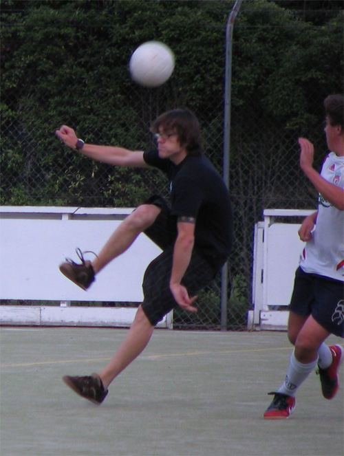 First up, Graeme trying to get the ball by running through his opposition.