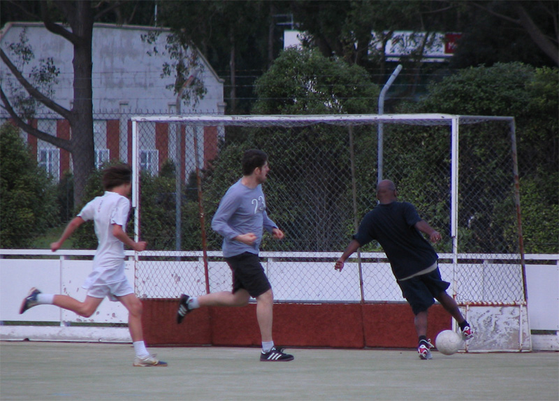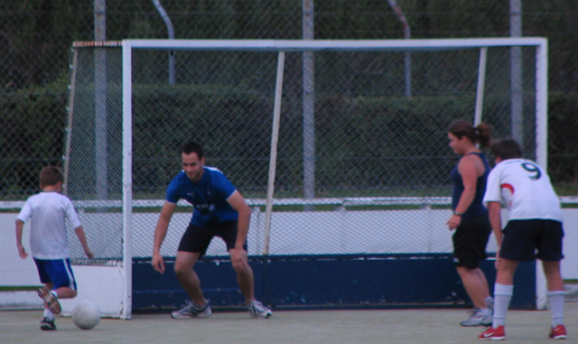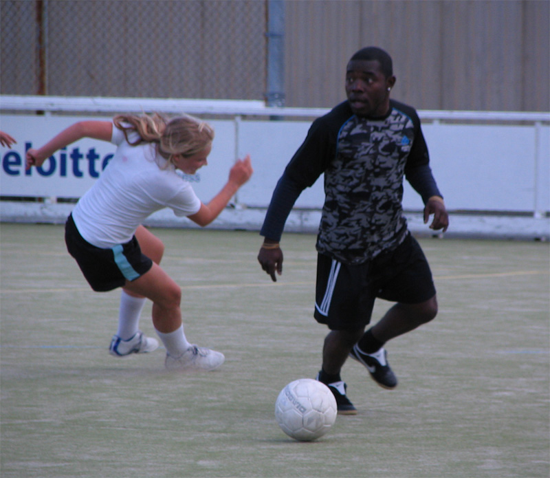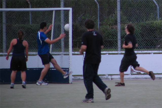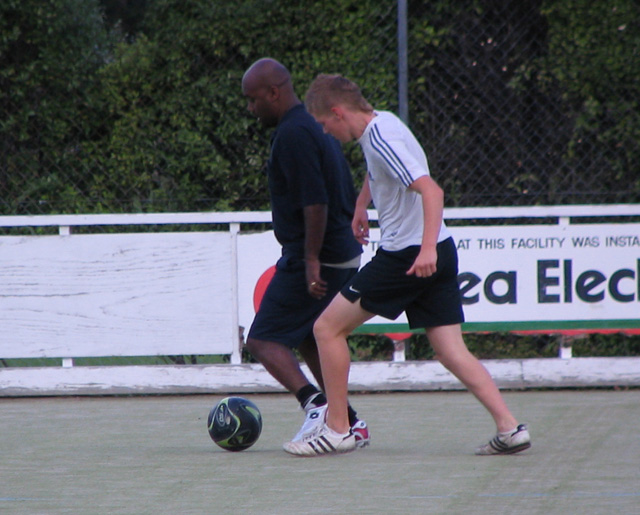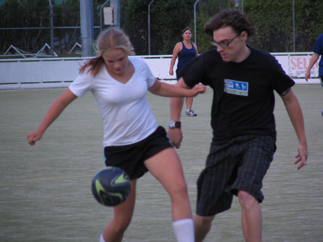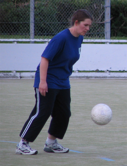 But the chemistry department soccer team said they were usually short of female players so I dragged along Becky Brassett to help them out. The games are played 9 a side on a field hockey turf. Here are some photos I took at the game.