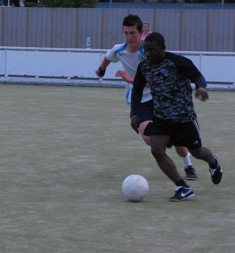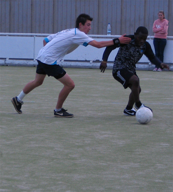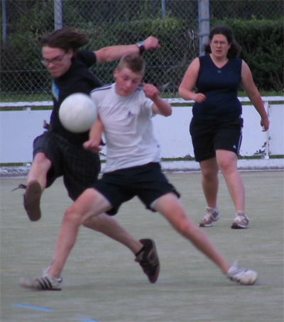 First up, Graeme trying to get the ball by running through his opposition.