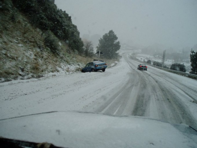 End of the carnage on the Kilmog hill. Apparently some people think it's perfectly sensible to drive on crazily icy roads with no chains or four wheel drive!? Thanks to Ed Waite for the photo.