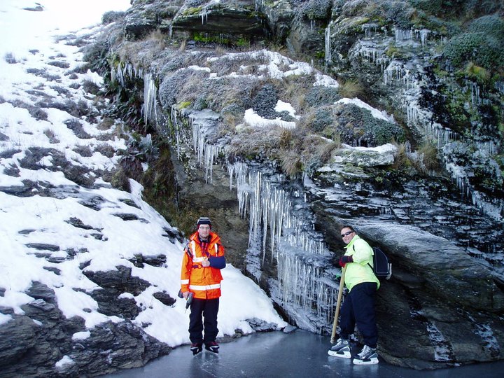 Ryan Hellyer (me) and Dave Patchett standing on a frozen stream. We managed to skate downhill in that stream for a few hundred meters. Thanks to Ed Waite for the photo.