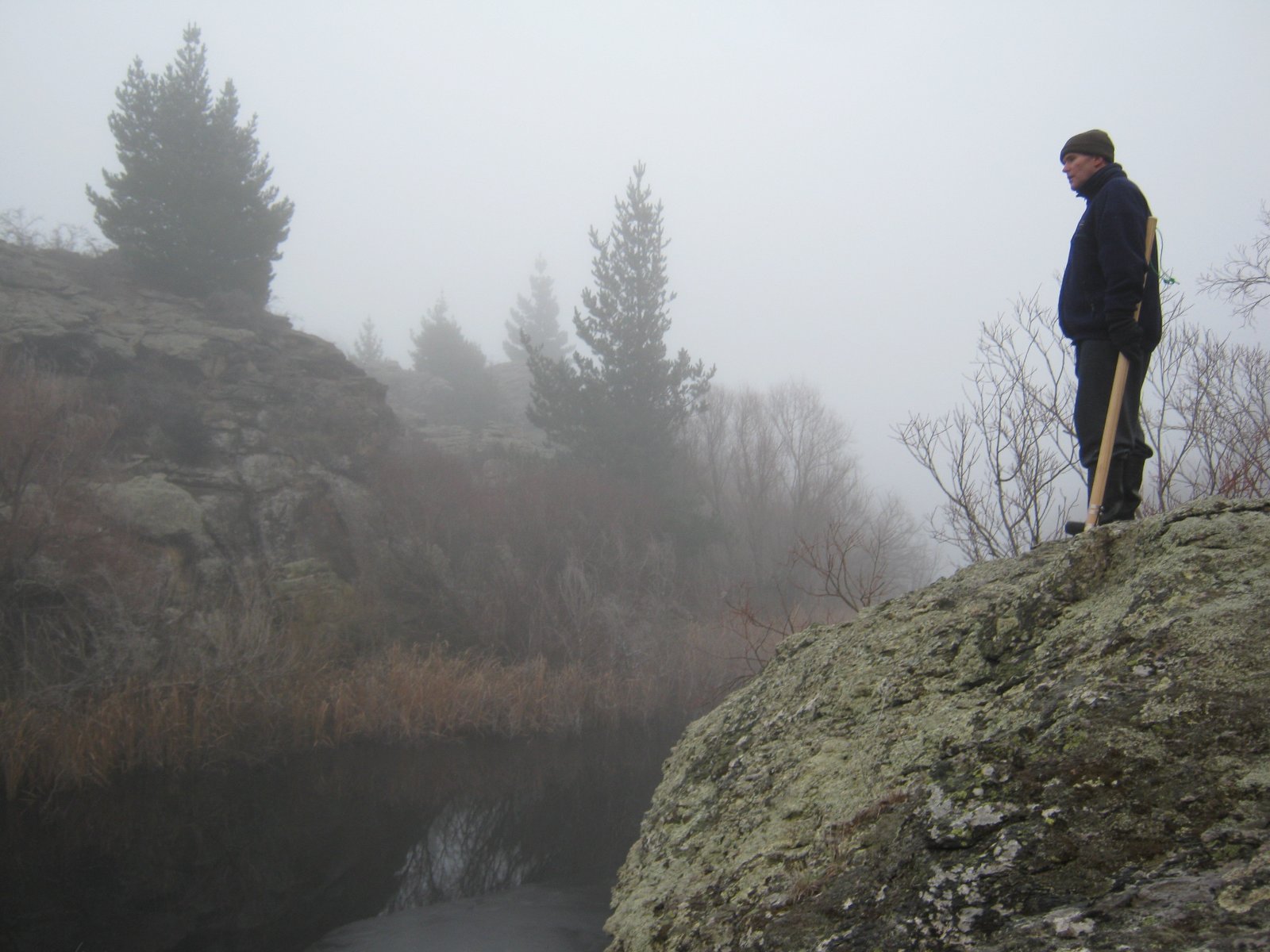 Dave Patchett striding across the ice after we made a quick jaunt over to the dam face around lunch time.